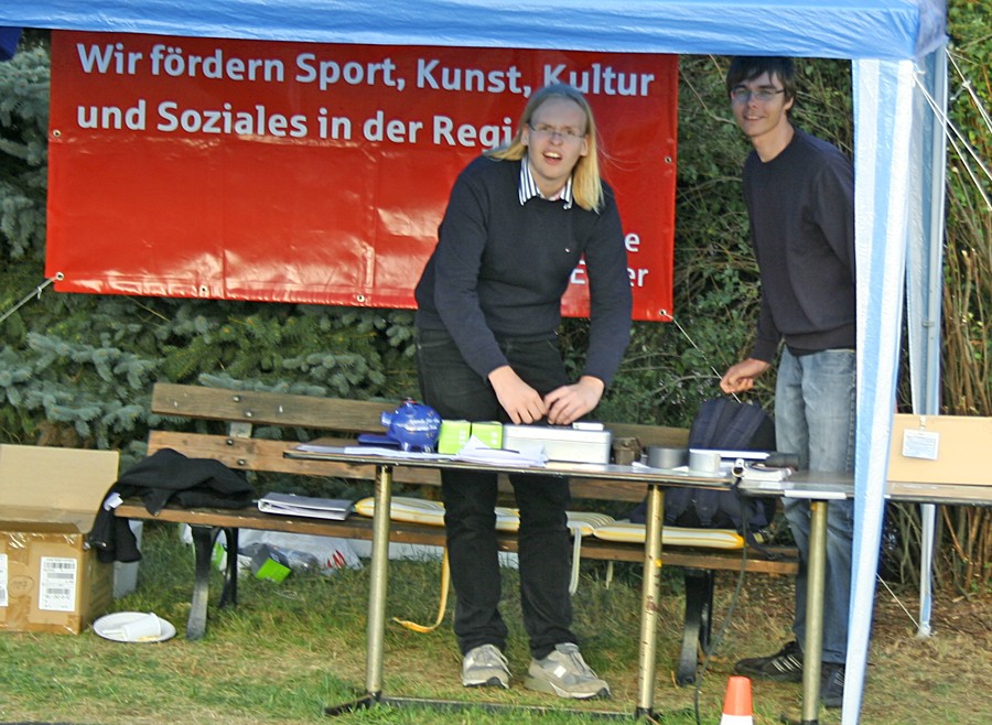 Ja und natürlich hängt nicht zufällig ein Werbebanner der Sparkasse Elbe-Elster