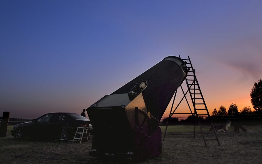 Erhard und sein 42"Dobson haben zwischen Sonnenuntergang und Nautischer Dämmerung