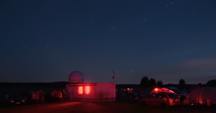 11. HTT - Freitag Abend: Blick in der späten Abenddämmerung zum FIRST OPENING der Sternwarte.