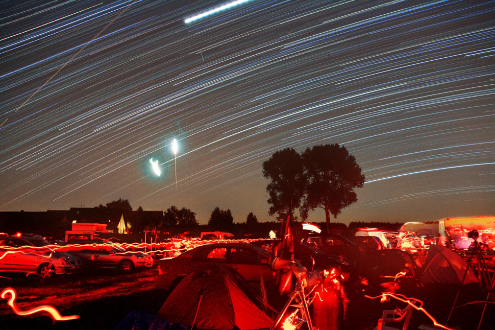 Sternstrichspuren über HTT-Hauptwiese bei sehr langer Belichtungszeit ©