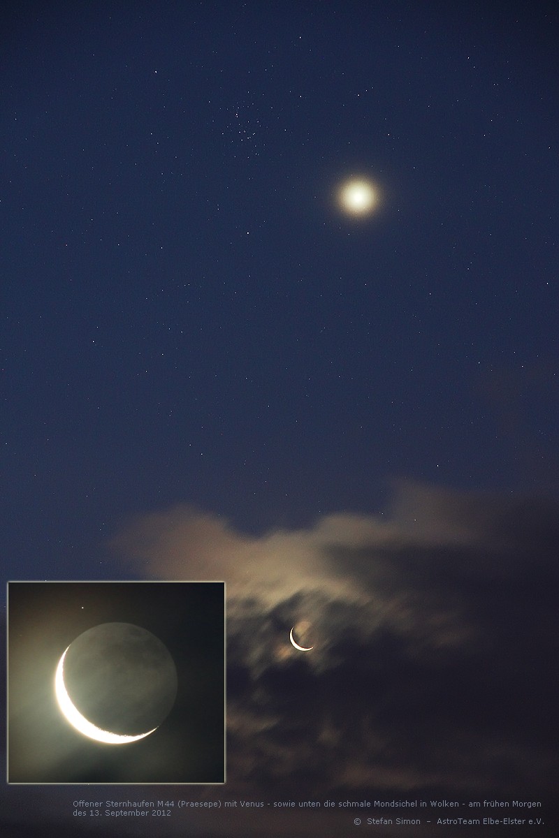 Venus bei M 44 - sowie unten der Mond nahe Alpha Cancri