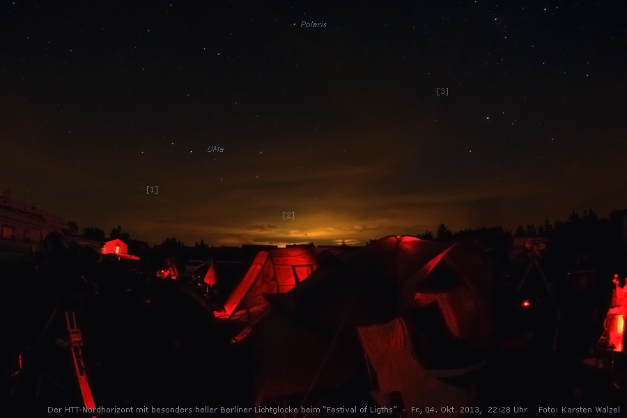 Bereits 20° unterhalb des Polarsterns ist am wolkenlosen Firmament auch fotografisch kein Berliner Streulicht mehr