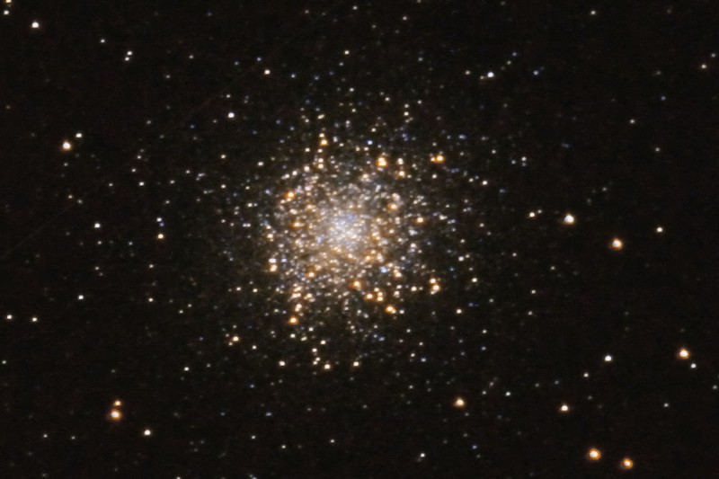 des Kugelsternhaufens entsprechen realen schwächeren Sternen (habe dieses Bild mit Aufnahmen an größeren Teleskopen