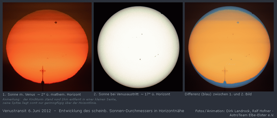 langen Lichtweges in der Atmosphäre) elliptisch verzerrt, aber ihr Flächenausdehnung am Himmel ist keinesfalls