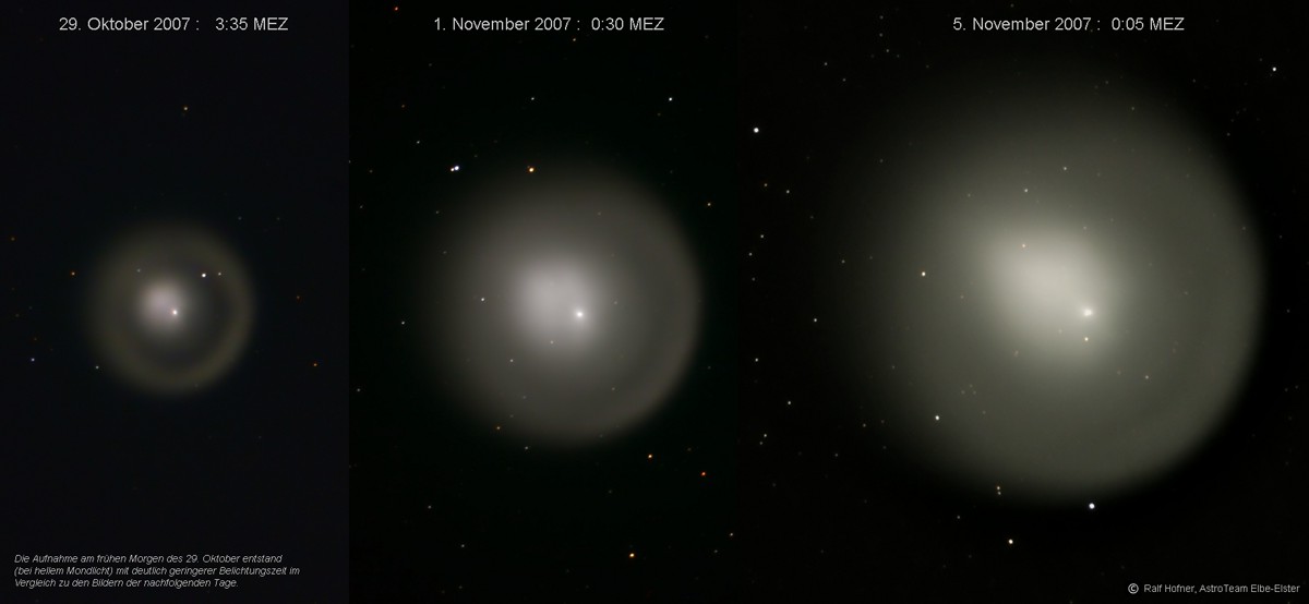 Die Entwicklung des Kometen 17P / Holmes © Ralf Hofner.