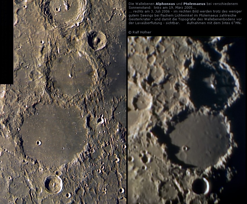 bizarren Schattenwürfe im Inneren von Ptolemeaus (rechte Aufnahme) zeigen, dass sich auch bei ungünstigerem Seeing