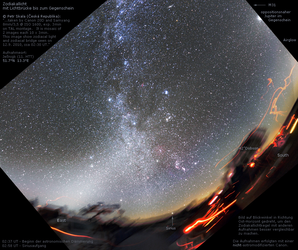Das prächtige Zodiakalband über der HTT-Zeltstadt 2010 - aufgenommen vom tschechischen