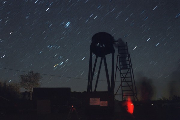 Oberservatorium vor dem Kreisel der Zirkumpolarsterne - sowie (rechts) Gebieten der Milchstraße. Man