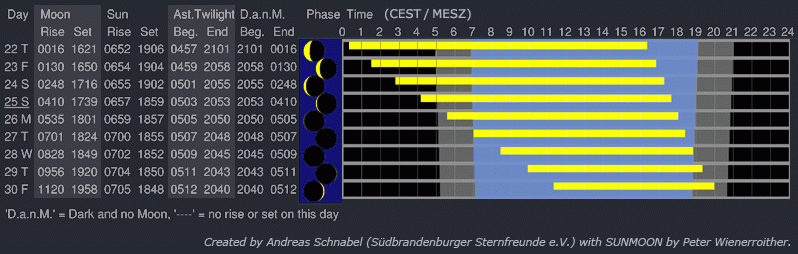 Durchgang des GRF (System II) - Zeiten in MESZ (CEST)