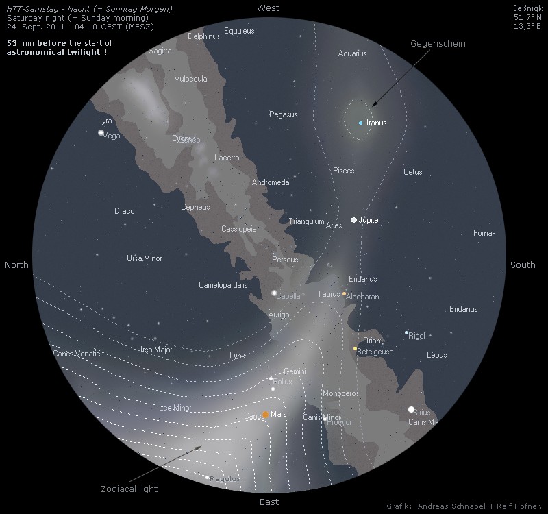 Airglow und Zodiakallicht(brücke) werden erst am Ende der Freitag-Nacht (= Samstag früh, 24. 09.) bzw. noch