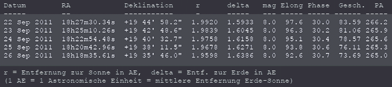 Februar 2012 die 6. Größenklasse erreichen. Jetzt - Ende September 2011 - ist der Schweifstern nach Einbruch