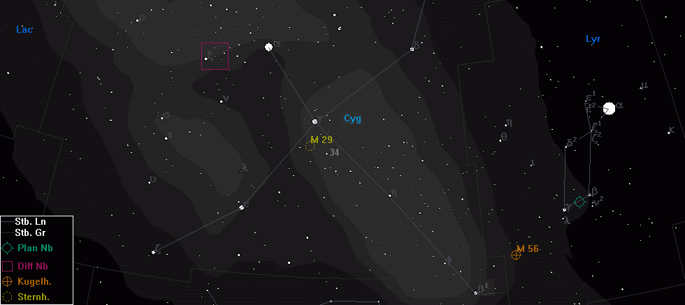 Gasnebel - RA: 20h 12min Dekl.: 38° 20‘ |